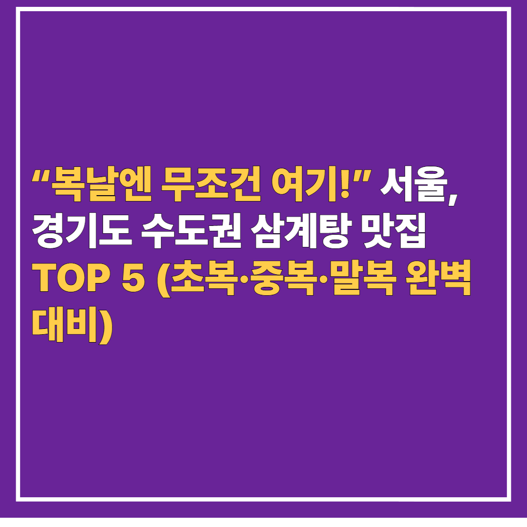 🍗“복날엔 무조건 여기!” 서울, 경기도 수도권 삼계탕 맛집 TOP 5 (초복·중복·말복 완벽 대비)