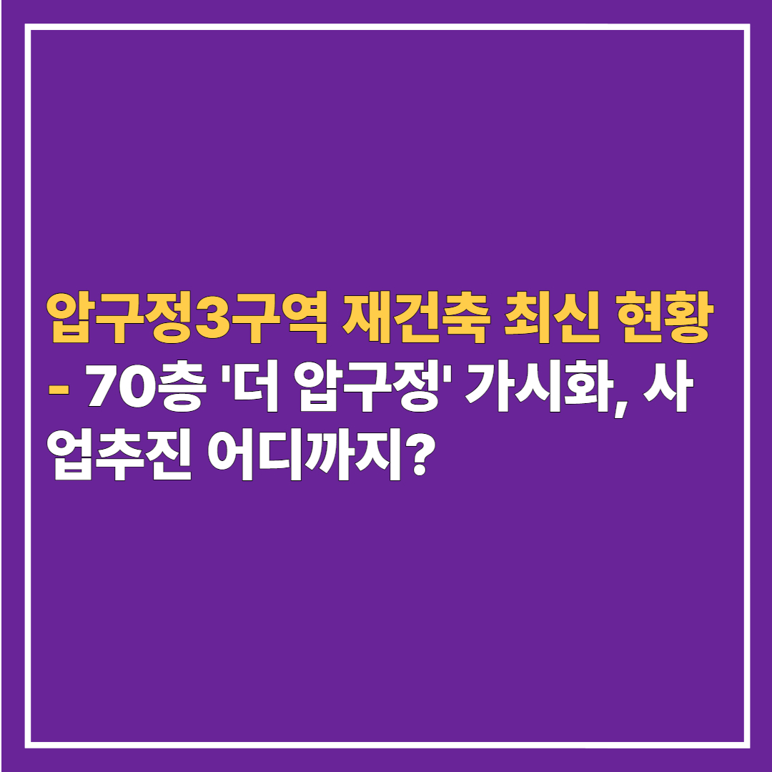 🏙️ 압구정3구역 재건축 최신 현황 - 70층 '더 압구정' 가시화, 사업추진 어디까지?