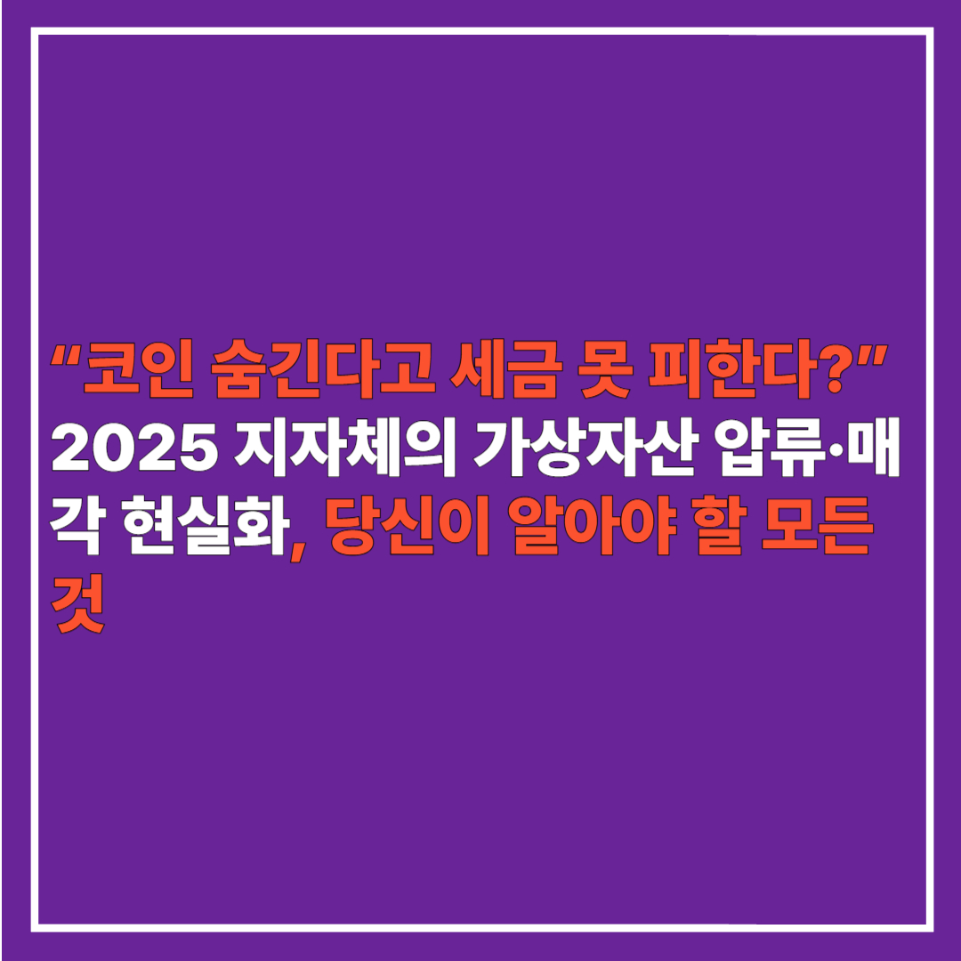2025 지자체의 가상자산 압류·매각 현실화, 당신이 알아야 할 모든 것