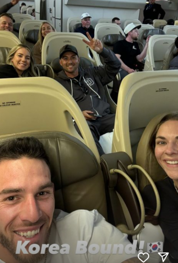 한국행 비행기에 탑승한 샌디에이고 선수단은 15일 많은 팬들로부터 환영을 받으며 도착했다.