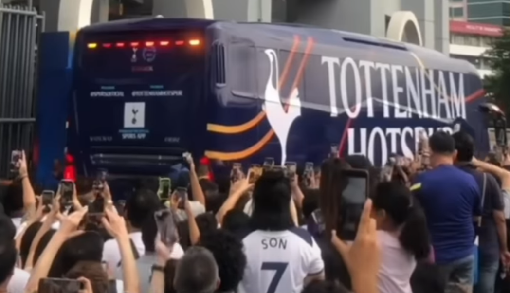 선수단 버스가 등장해 정문을 통과하자 손흥민의 애칭인 "쏘니"라 부르는 팬부터 그저 소리를 지르는 팬까지 다양했다.