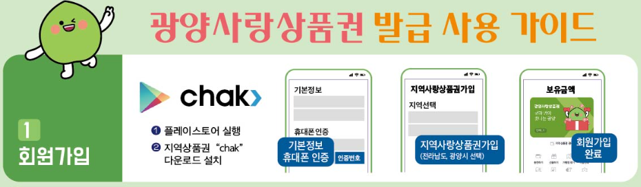 | 광양사랑상품권 가맹점 문의 | ☎ 1666-1247 (chak 고객센터) | https://www.chak.or.kr |