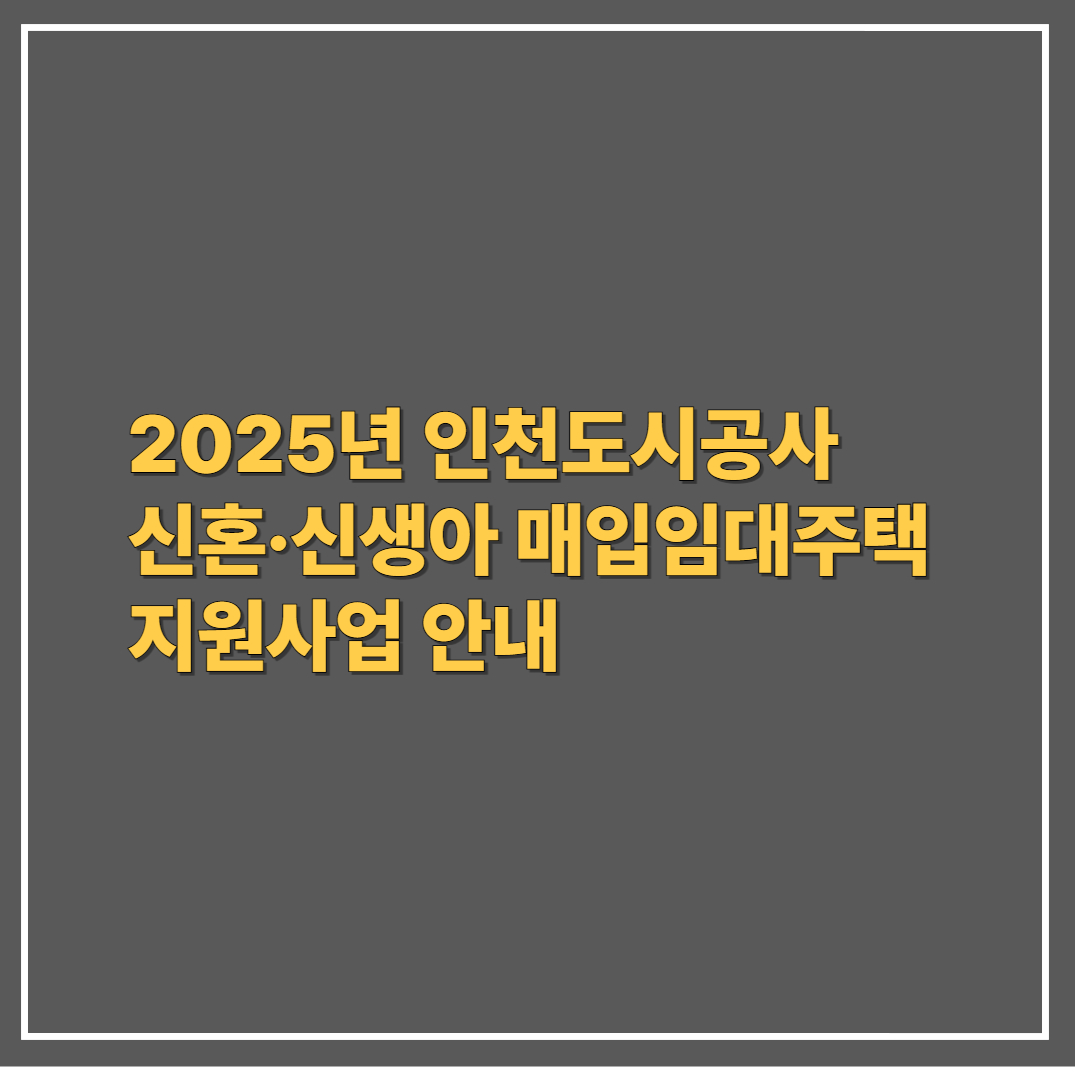 이번 글에서는 ‘2025년 인천도시공사 신혼·신생아 매입임대주택 지원사업’의 신청 조건, 지원 내용, 서류, 실제 Q&A 사례까지 완벽하게 정리해드립니다.