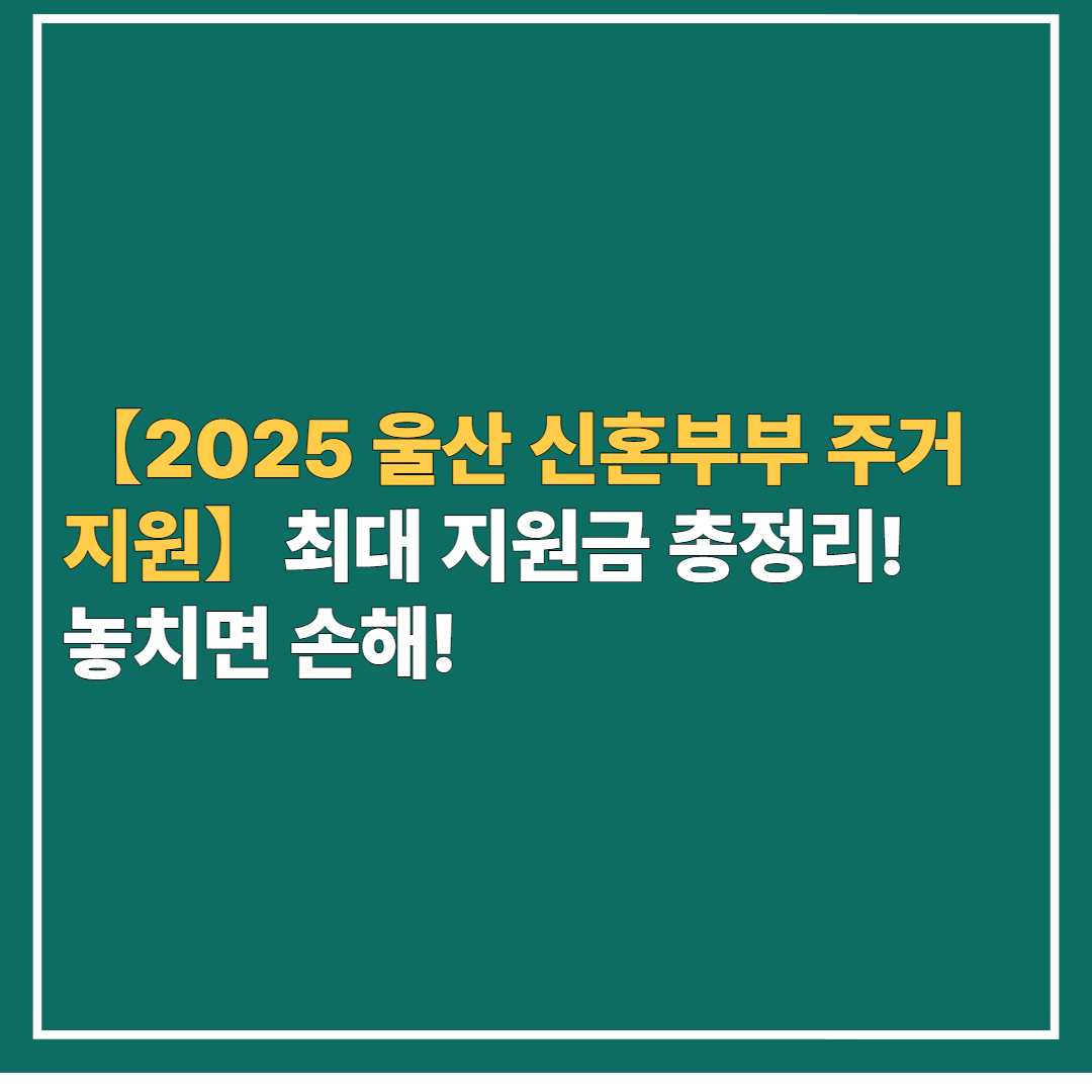 🏡【2025 울산 신혼부부 주거지원】최대 지원금 총정리! 놓치면 손해!