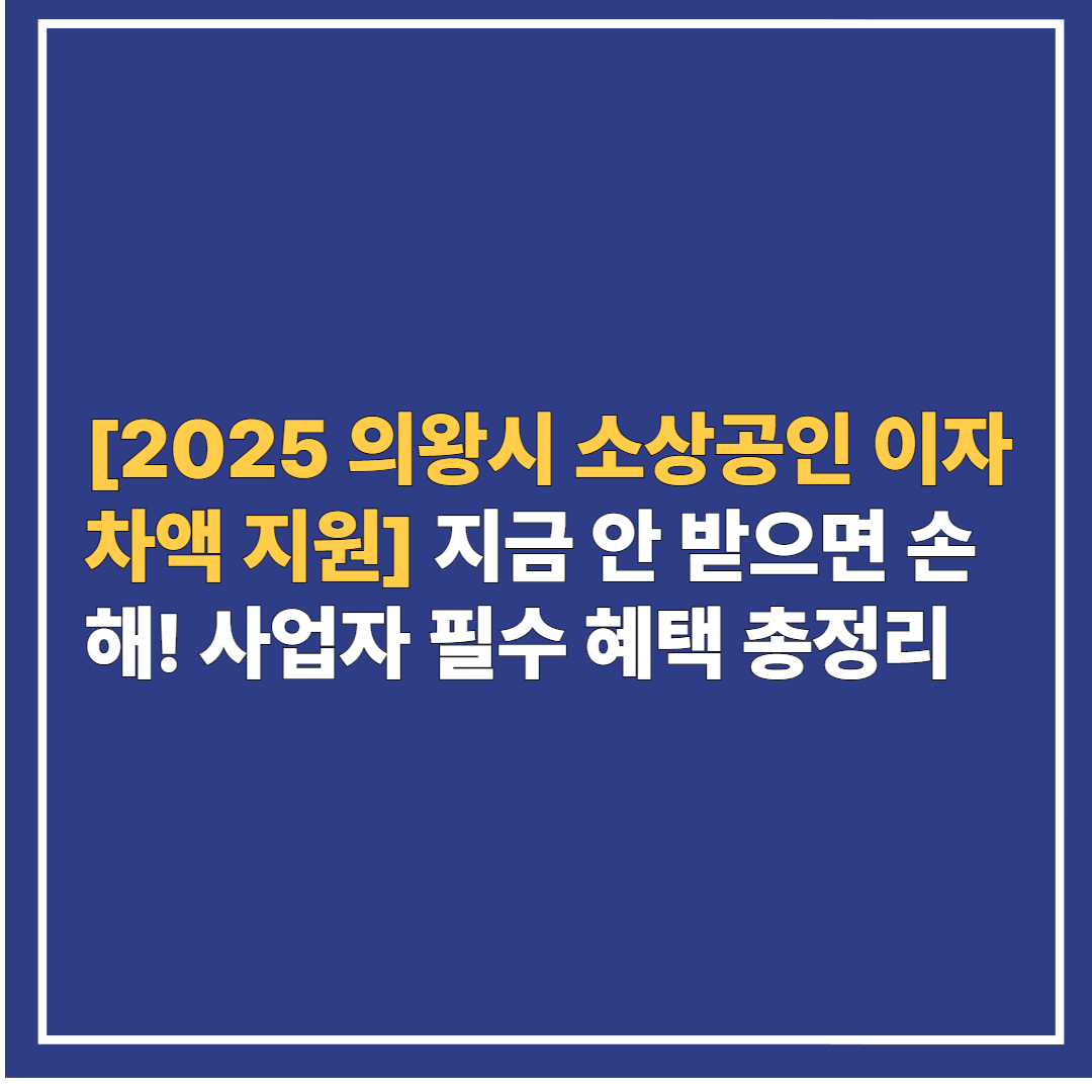 💸[2025 의왕시 소상공인 이자차액 지원] 지금 안 받으면 손해! 사업자 필수 혜택 총정리