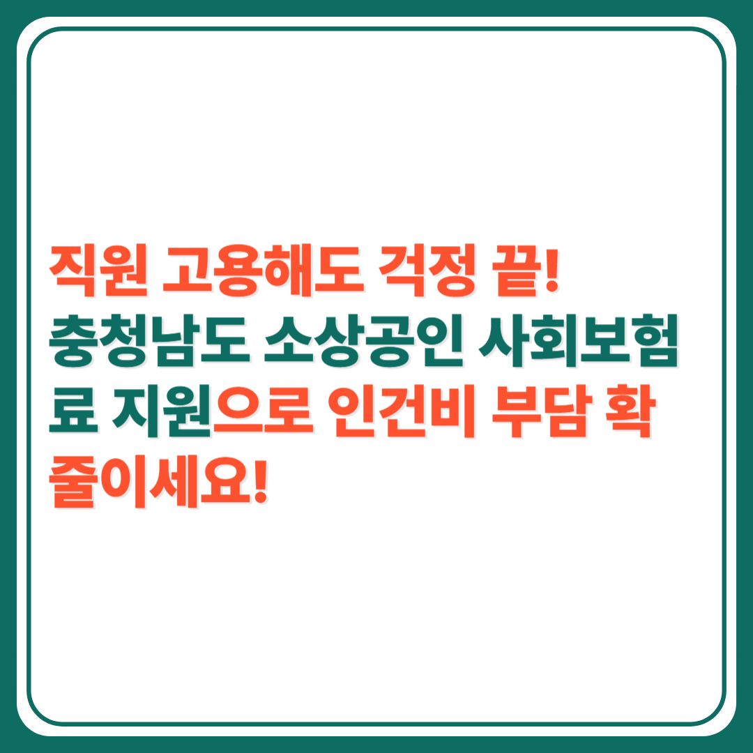 💼 직원 고용해도 걱정 끝! 충청남도 소상공인 사회보험료 지원으로 인건비 부담 확 줄이세요!