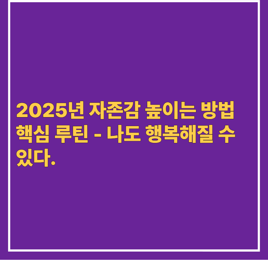 🌟 2025년 자존감 높이는 방법 핵심 루틴 - 나도 행복해질 수 있다.