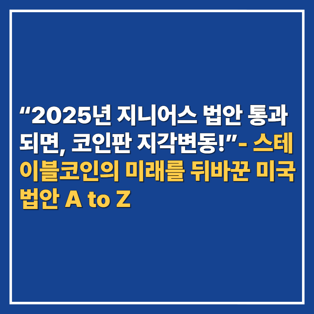 “2025년 지니어스 법안 통과되면, 코인판 지각변동!”