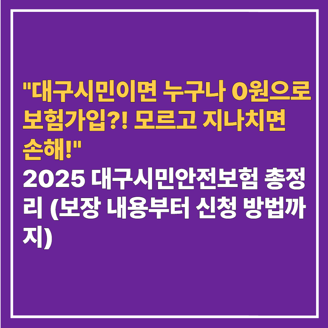 🚨 "대구시민이면 누구나 0원으로 보험가입?! 모르고 지나치면 손해!"