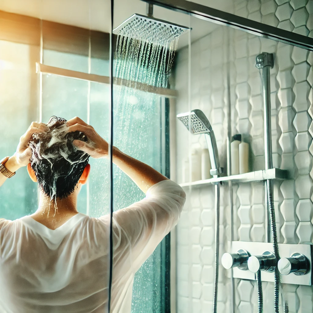- 미온수로 머리를 충분히 적셔준 후, 적당량의 샴푸를 덜어 거품을 냅니다.