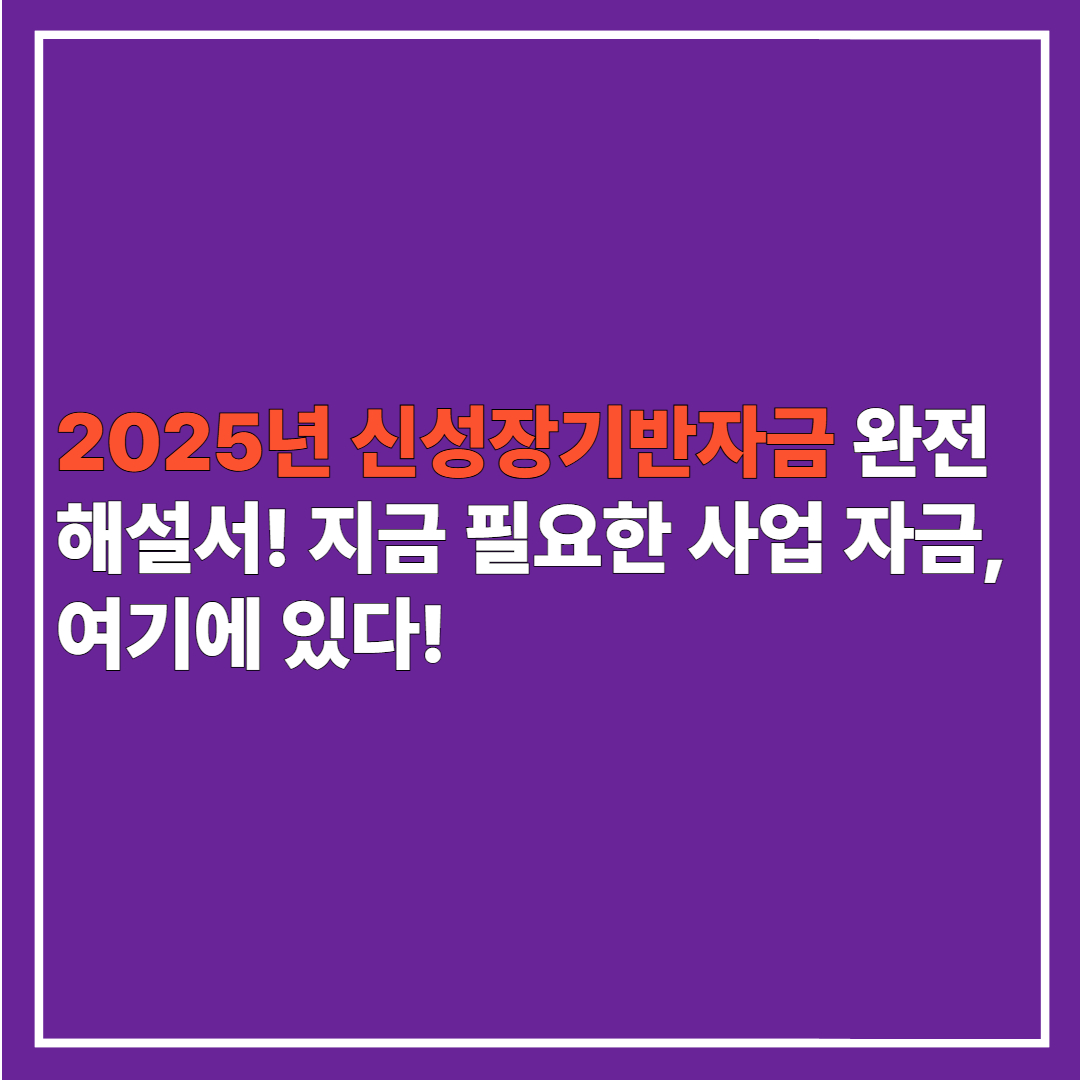 🚀 2025년 신성장기반자금 완전 해설서! 지금 필요한 사업 자금, 여기에 있다!