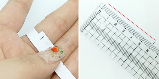 ③볼펜으로 체크된 종이를 펼쳐서 길이를 측정한다.