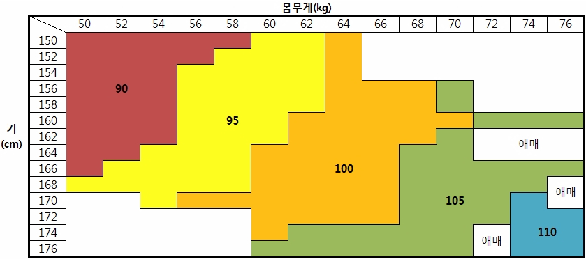 ◆본인의 키와 몸무게를 기준으로 참고 할 수 있는 사이즈표