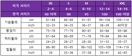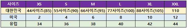 ◆부위별 사이즈를 기준으로 참고 할 수 있는 사이즈표
