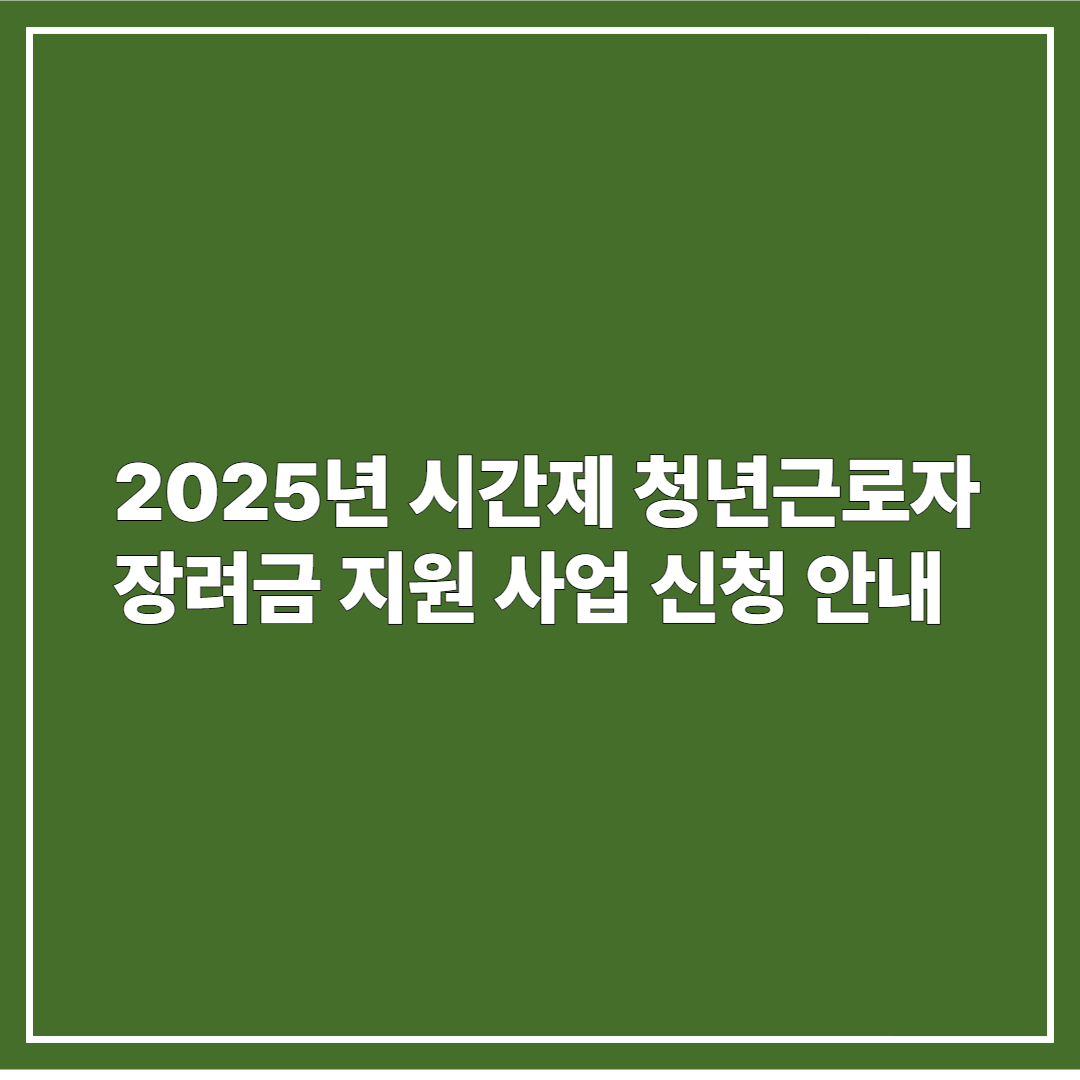 📢 2025년 시간제 청년근로자 장려금 지원이란?