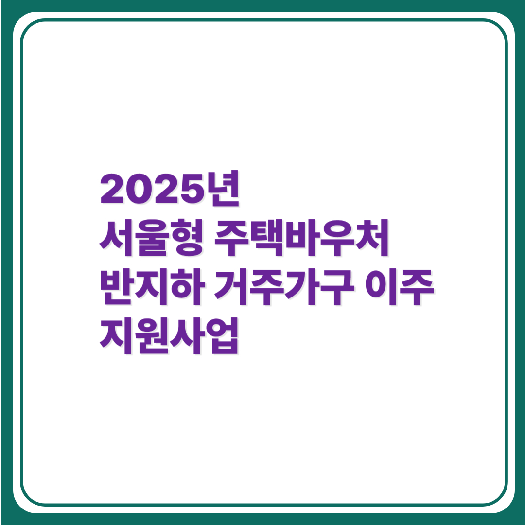 🏡 2025년 서울형 주택바우처 – 반지하 거주가구 이주 지원사업