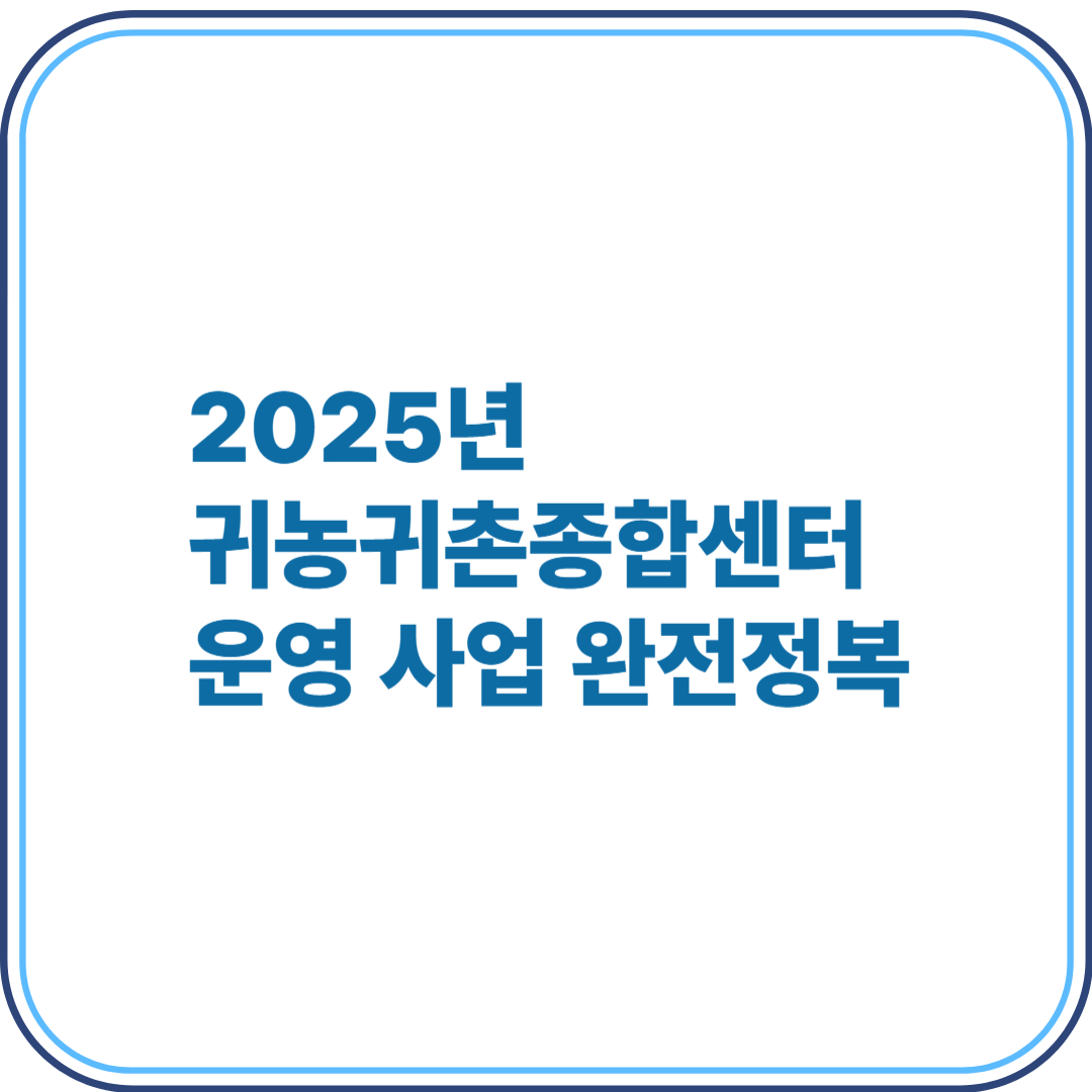 2025년 귀농귀촌종합센터 운영 사업 완전정복