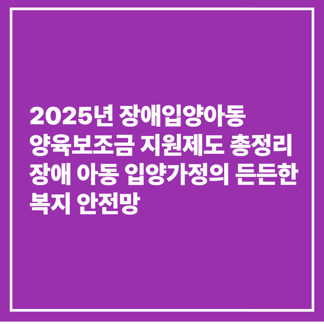 2025년 장애입양아동 양육보조금 지원제도 총정리 - 장애 아동 입양가정의 든든한 복지 안전망