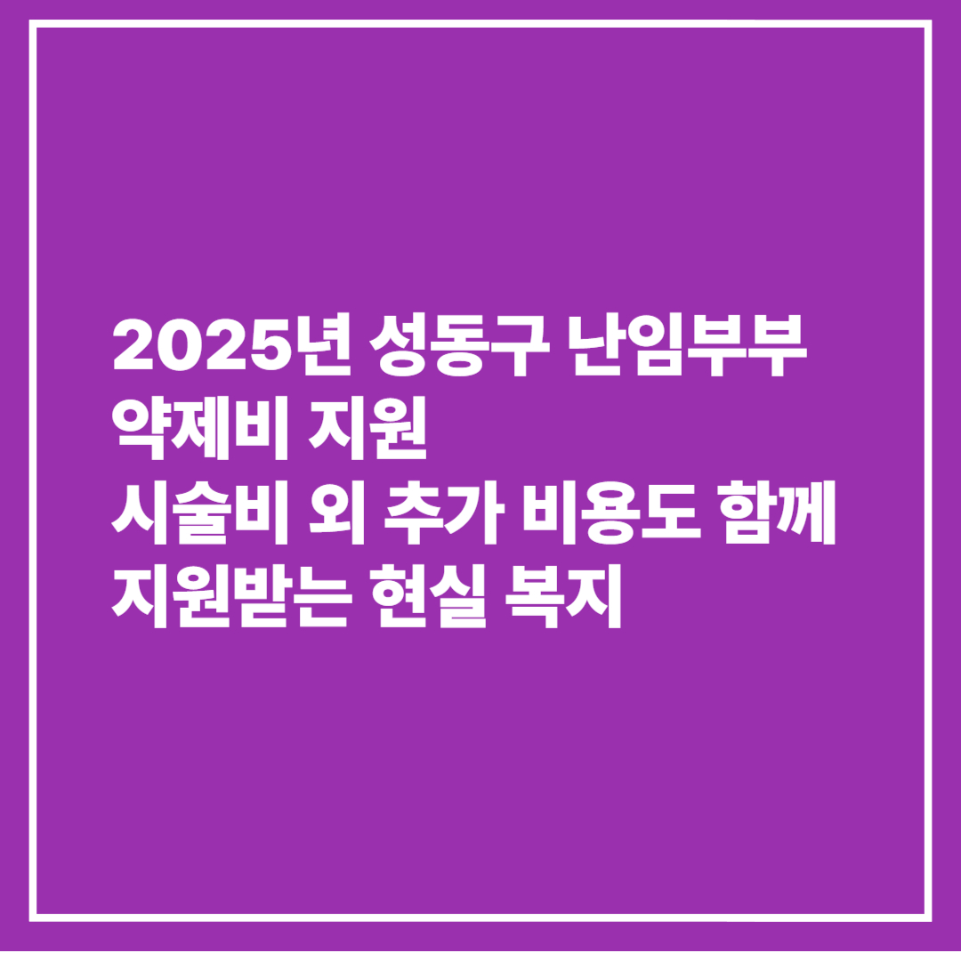 "시술비는 지원되는데, 약값은 왜 본인 부담일까?" 난임 치료를 겪는 부부들이 흔히 갖는 질문입니다. 반복적인 시술과 처방약으로 인한 비용 부담이 상당하죠. 성동구는 이러한 사각지대를 보완하고자 2025년부터 난임부부 대상 ‘시술 관련 약제비’ 지원제도를 별도로 시행하고 있습니다.