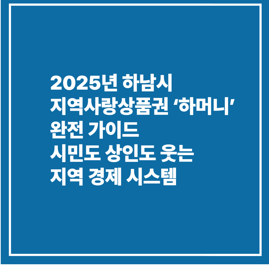 2025년 하남시 지역사랑상품권 ‘하머니’ 완전 가이드 - 시민도 상인도 웃는 지역 경제 시스템