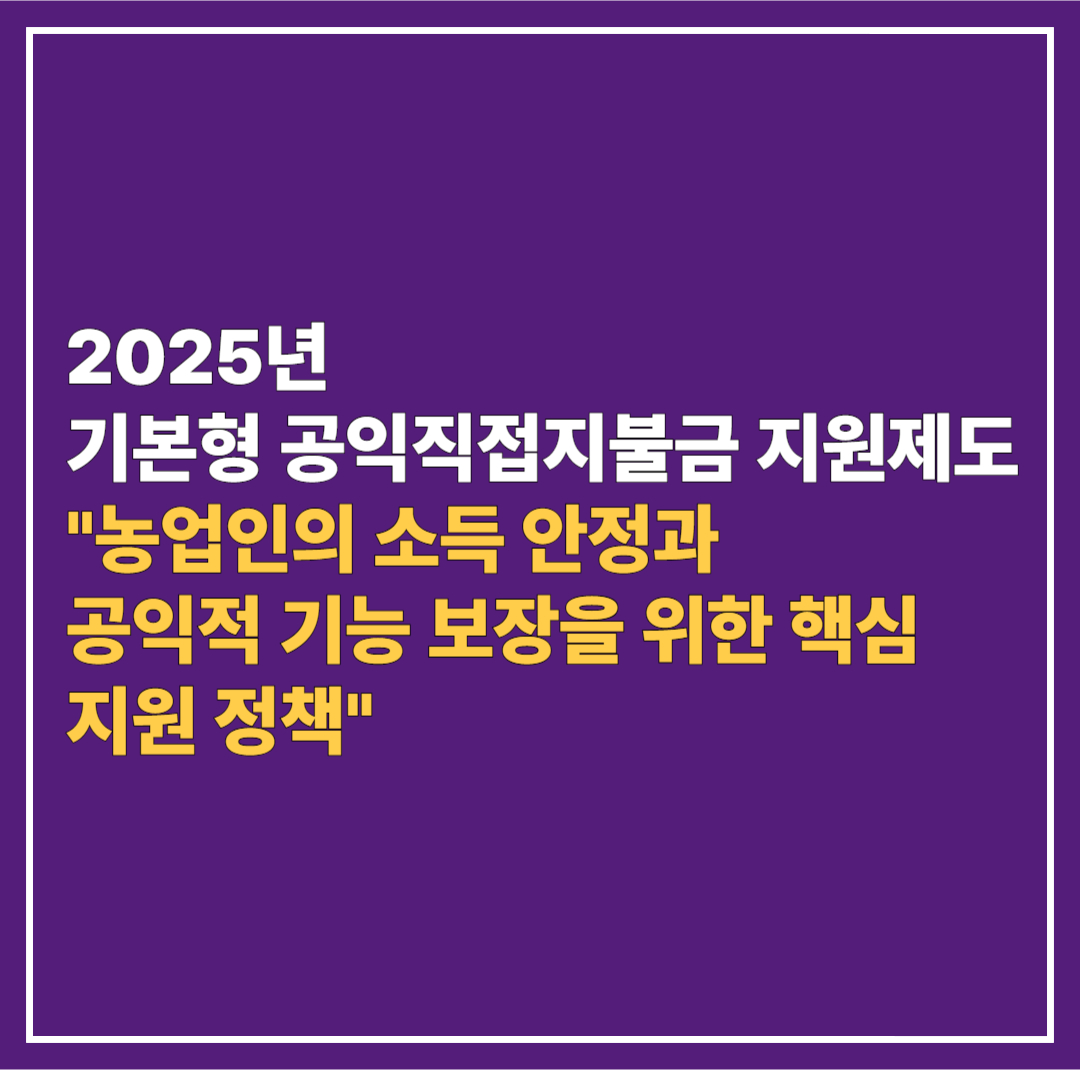 2025년 기본형 공익직접지불금 지원제도 - "농업인의 소득 안정과 공익적 기능 보장을 위한 핵심 지원 정책"