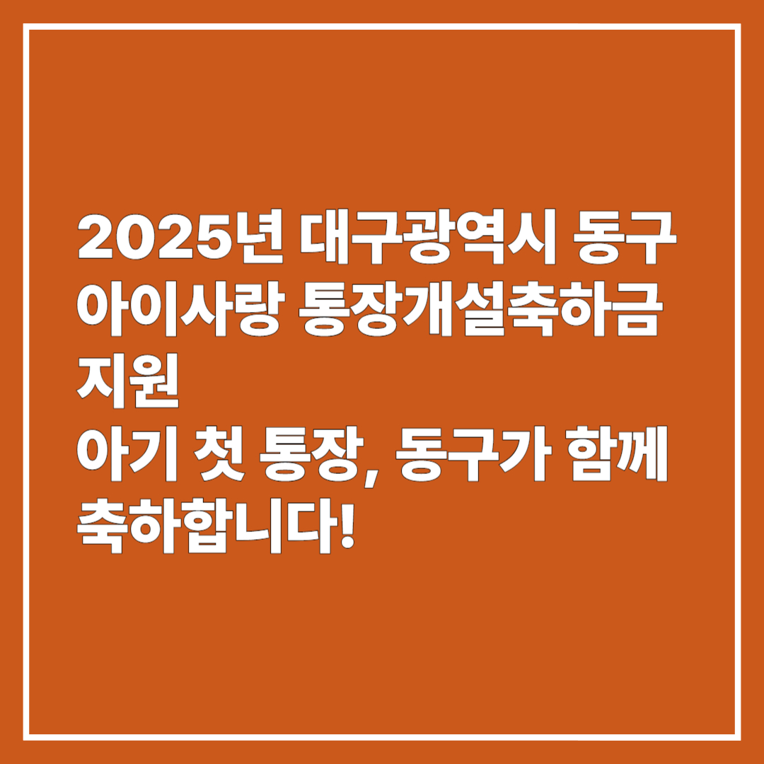 2025년 대구광역시 동구 아이사랑 통장개설축하금 지원 – 아기 첫 통장, 동구가 함께 축하합니다!