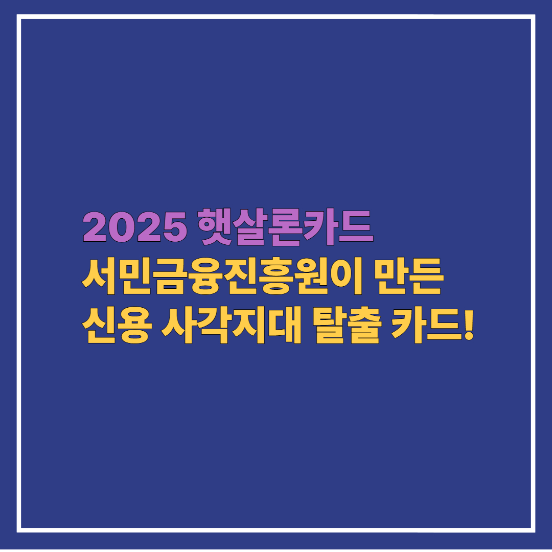 💳 2025 햇살론카드 – 서민금융진흥원이 만든 신용 사각지대 탈출 카드