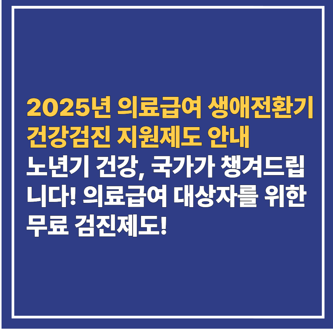 2025년 의료급여 생애전환기 건강검진 지원제도 안내 - 노년기 건강, 국가가 챙겨드립니다! 의료급여 대상자를 위한 무료 검진제도!