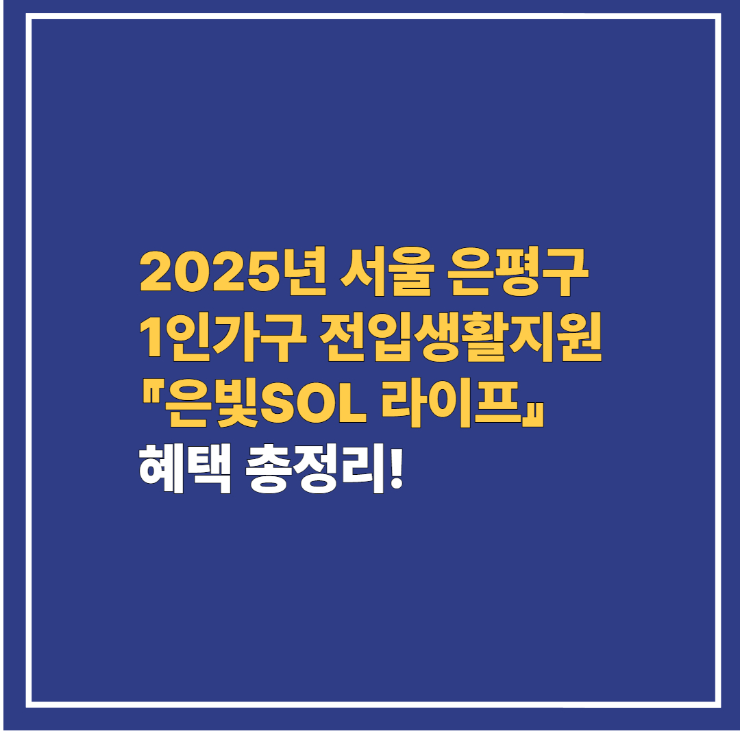 2025년 서울 은평구 1인가구 전입생활지원 『은빛SOL 라이프』 혜택 총정리! - “혼자여도 괜찮아, 은평이 함께할게요”