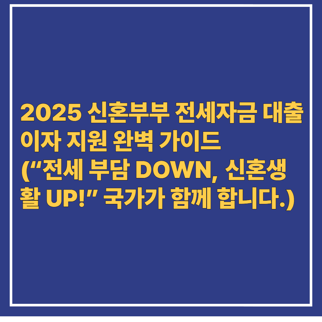 2025 신혼부부 전세자금 대출이자 지원 완벽 가이드(“전세 부담 DOWN, 신혼생활 UP!” 국가가 함께 합니다.)