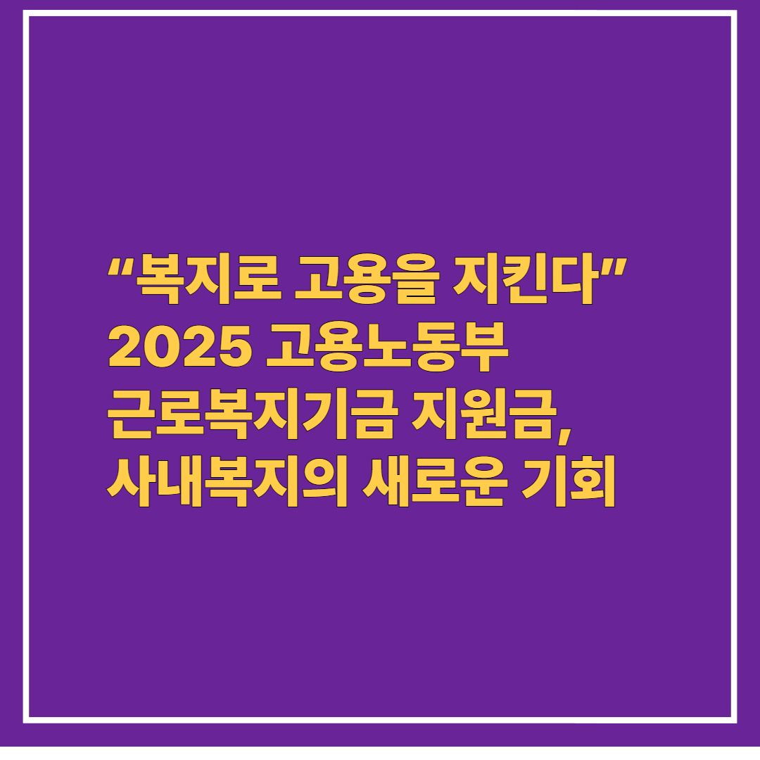 2025 고용노동부 근로복지기금 지원금, 사내복지의 새로운 기회