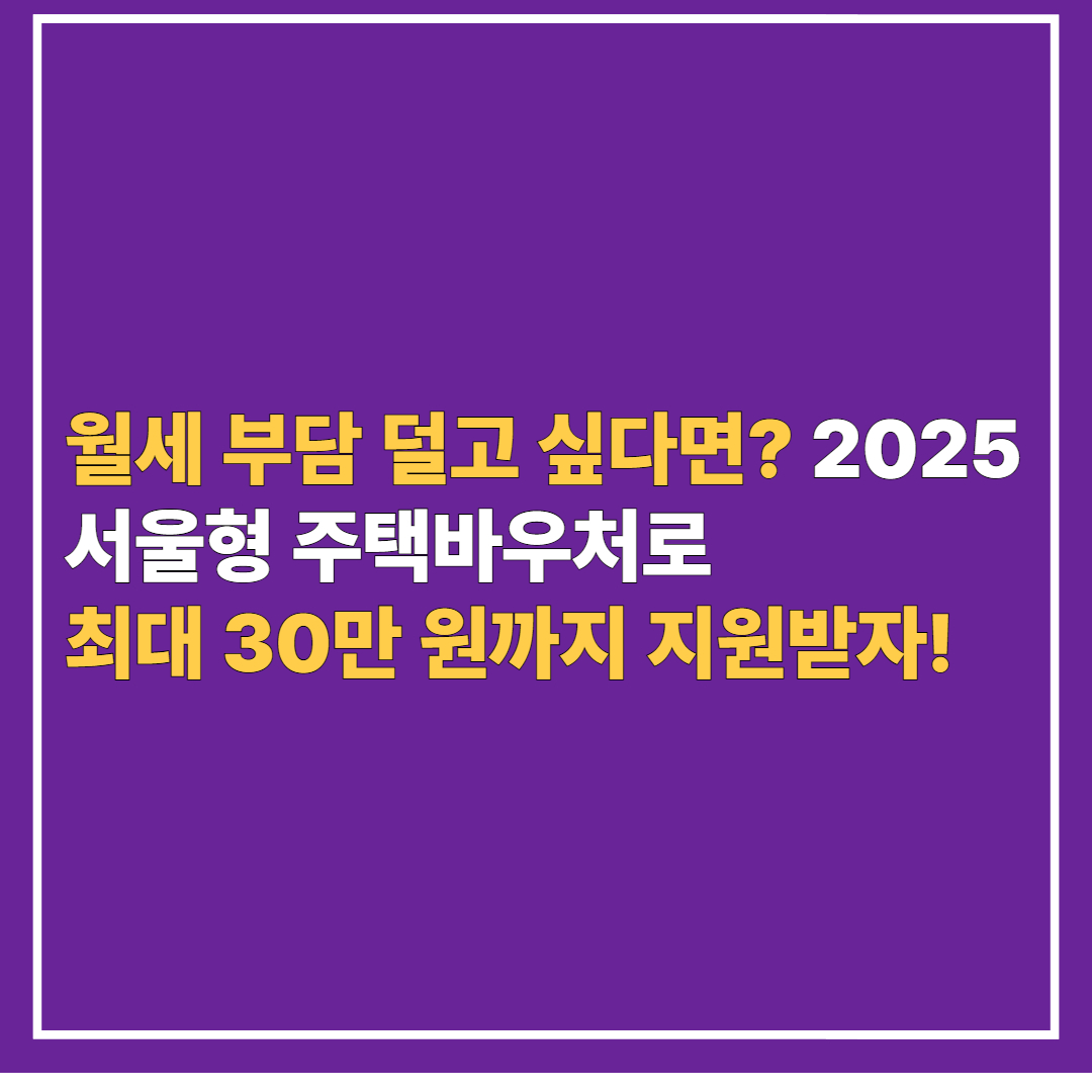 💥월세 부담 덜고 싶다면? 2025 서울형 주택바우처로 최대 30만 원까지 지원받자!
