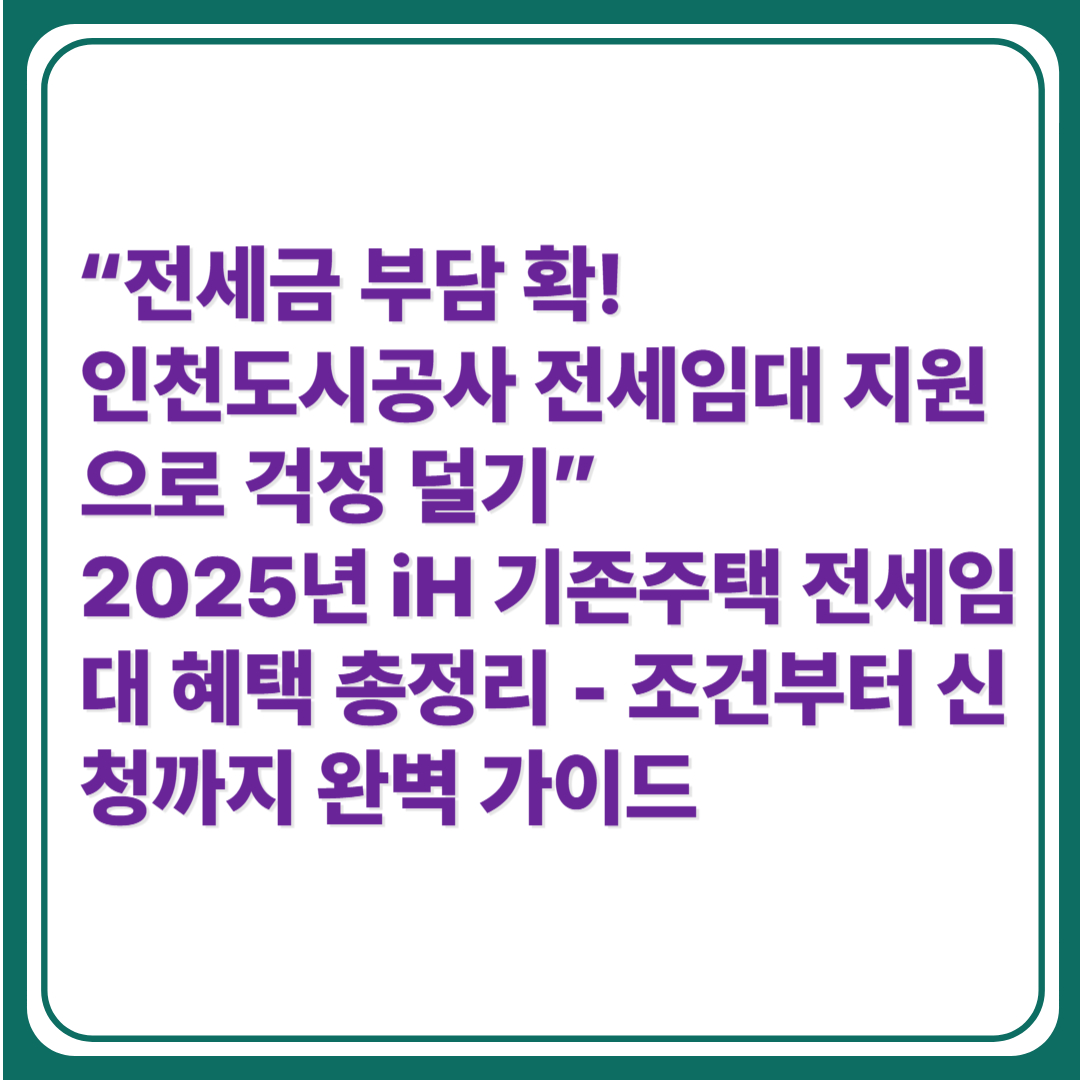 “전세금 부담 확! 인천도시공사 전세임대 지원으로 걱정 덜기”2025년 iH 기존주택 전세임대 혜택 총정리 - 조건부터 신청까지 완벽 가이드