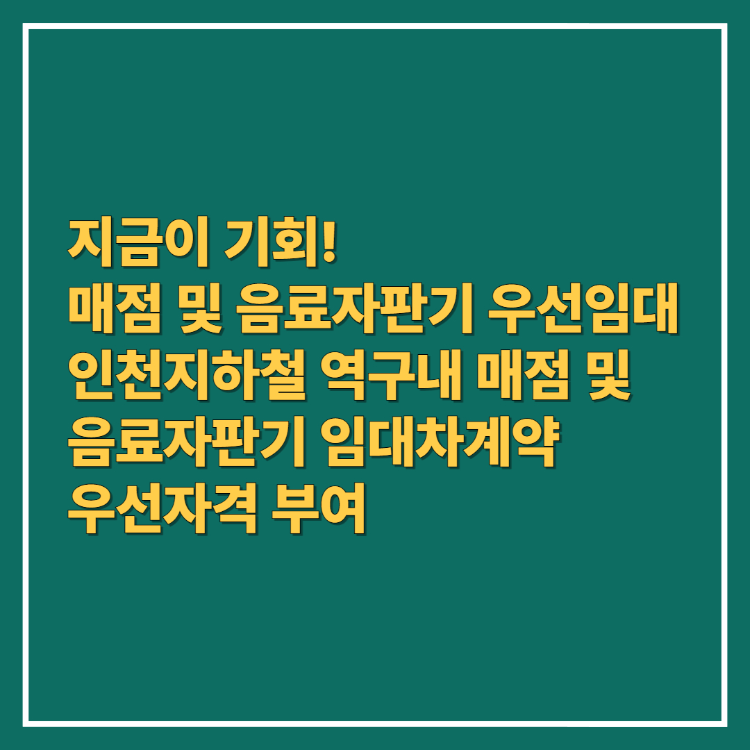 인천지하철 역구내 매점 및 음료자판기 임대차계약 우선자격 부여