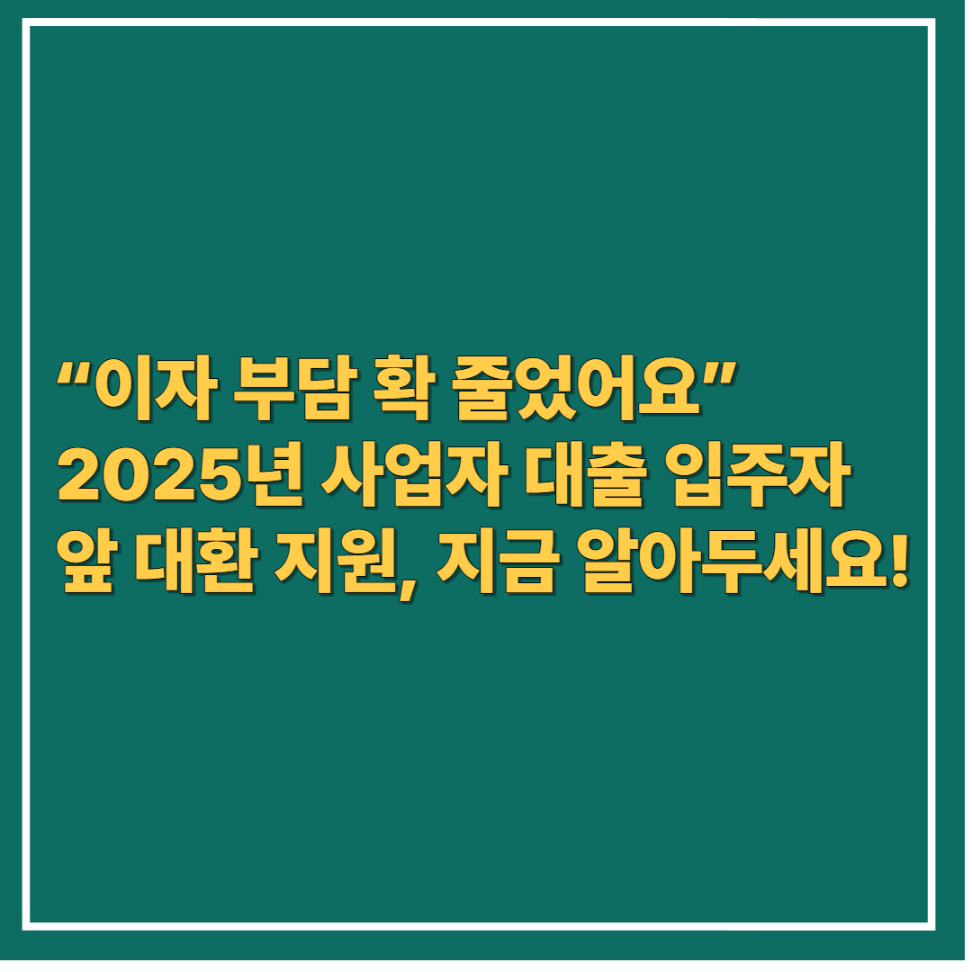 2025년 사업자 대출 입주자 앞 대환 지원, 지금 알아두세요!