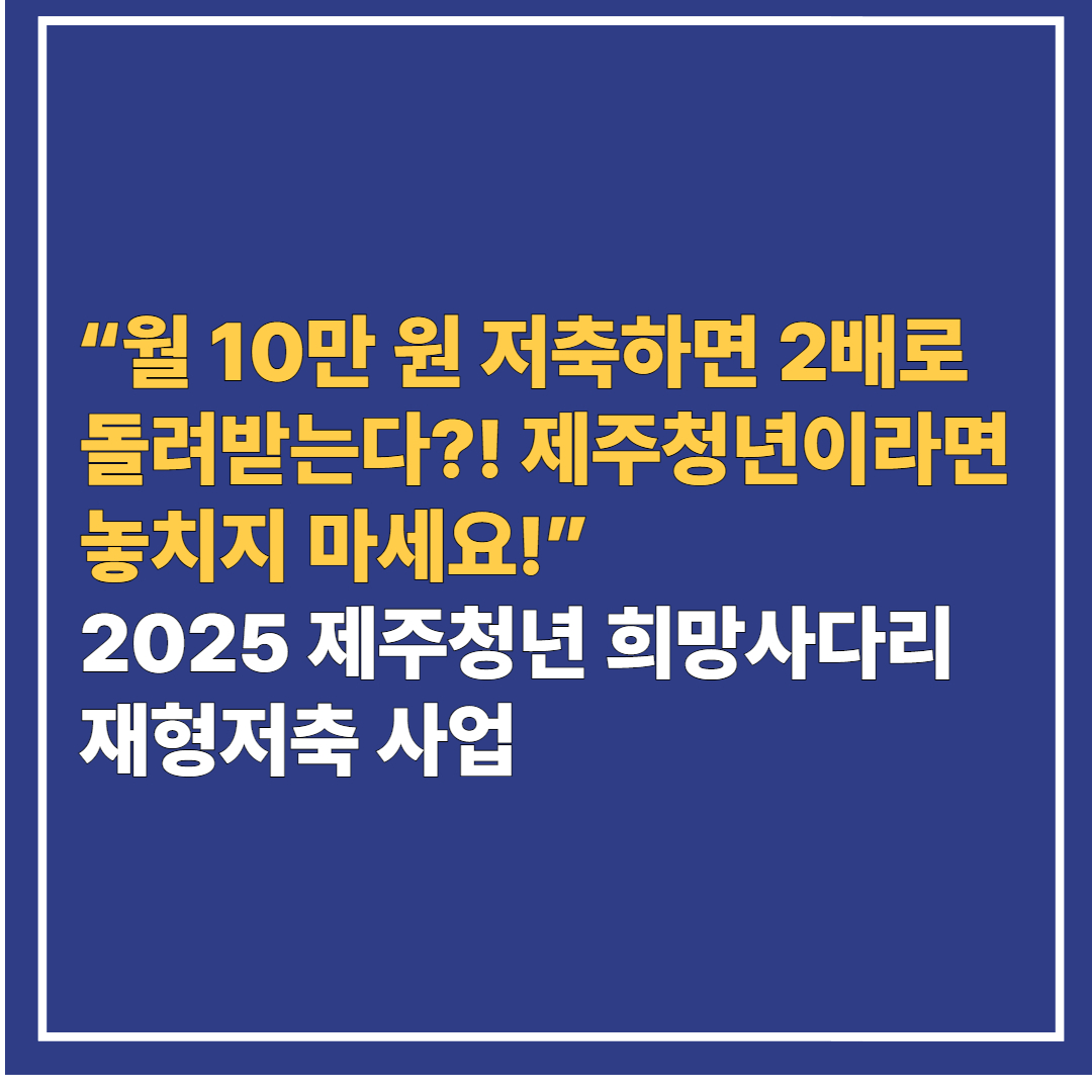 💰“월 10만 원 저축하면 2배로 돌려받는다?! 제주청년이라면 놓치지 마세요!”