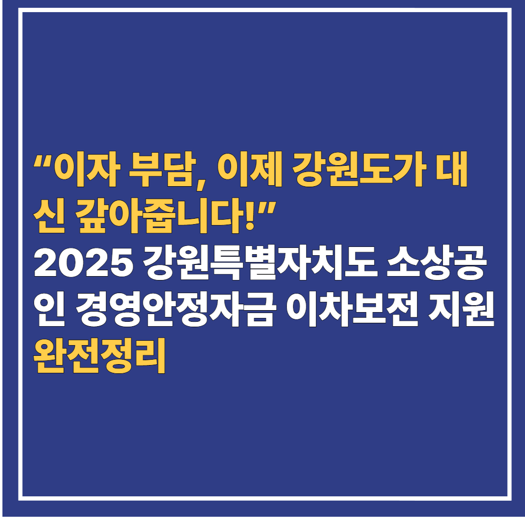 “이자 부담, 이제 강원도가 대신 갚아줍니다!”2025 강원특별자치도 소상공인 경영안정자금 이차보전 지원 완전정리