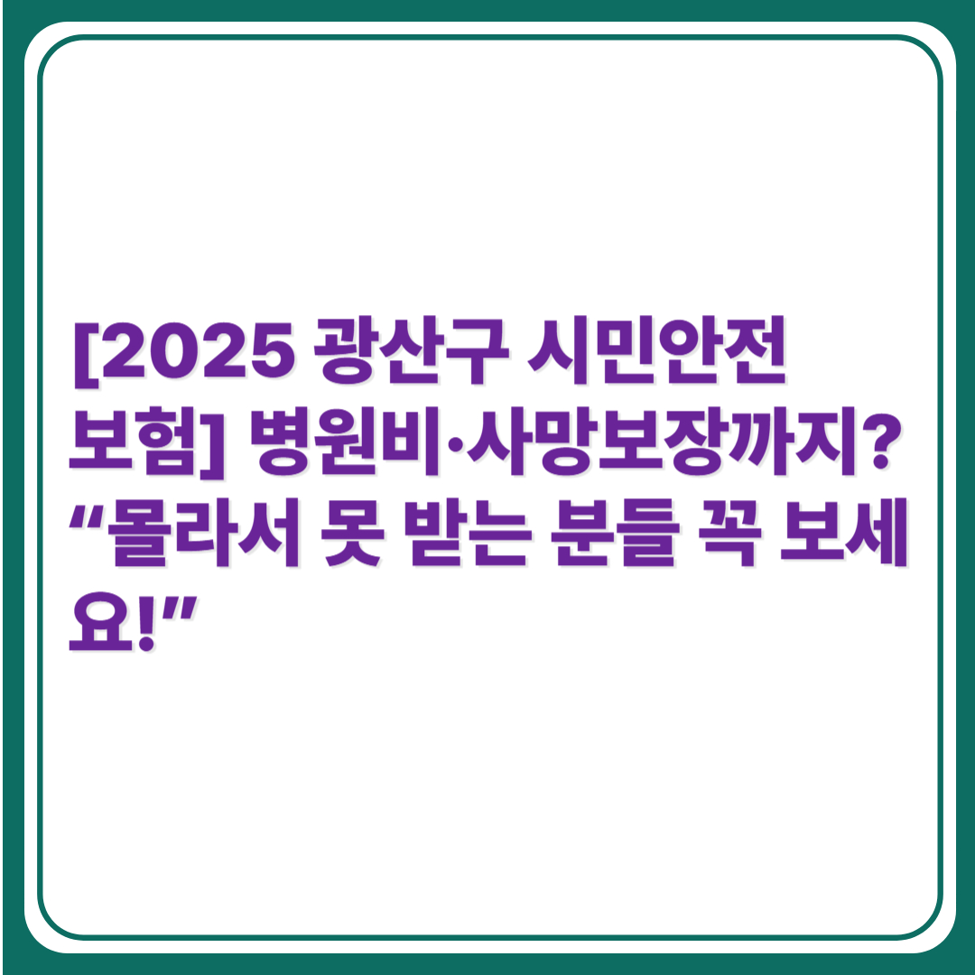 🛡️[2025 광산구 시민안전보험] 병원비·사망보장까지? “몰라서 못 받는 분들 꼭 보세요!”