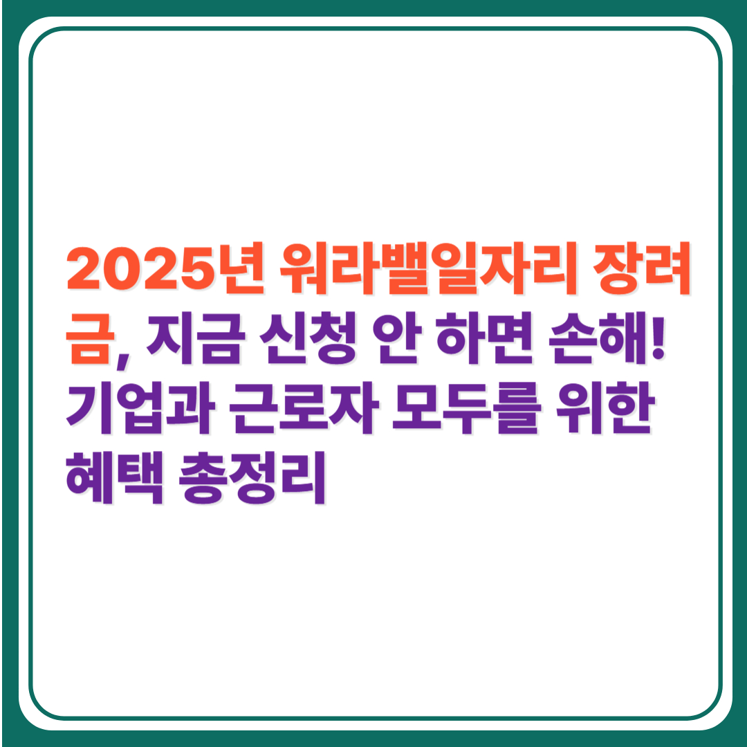 🌟 2025년 워라밸일자리 장려금, 지금 신청 안 하면 손해! 기업과 근로자 모두를 위한 혜택 총정리