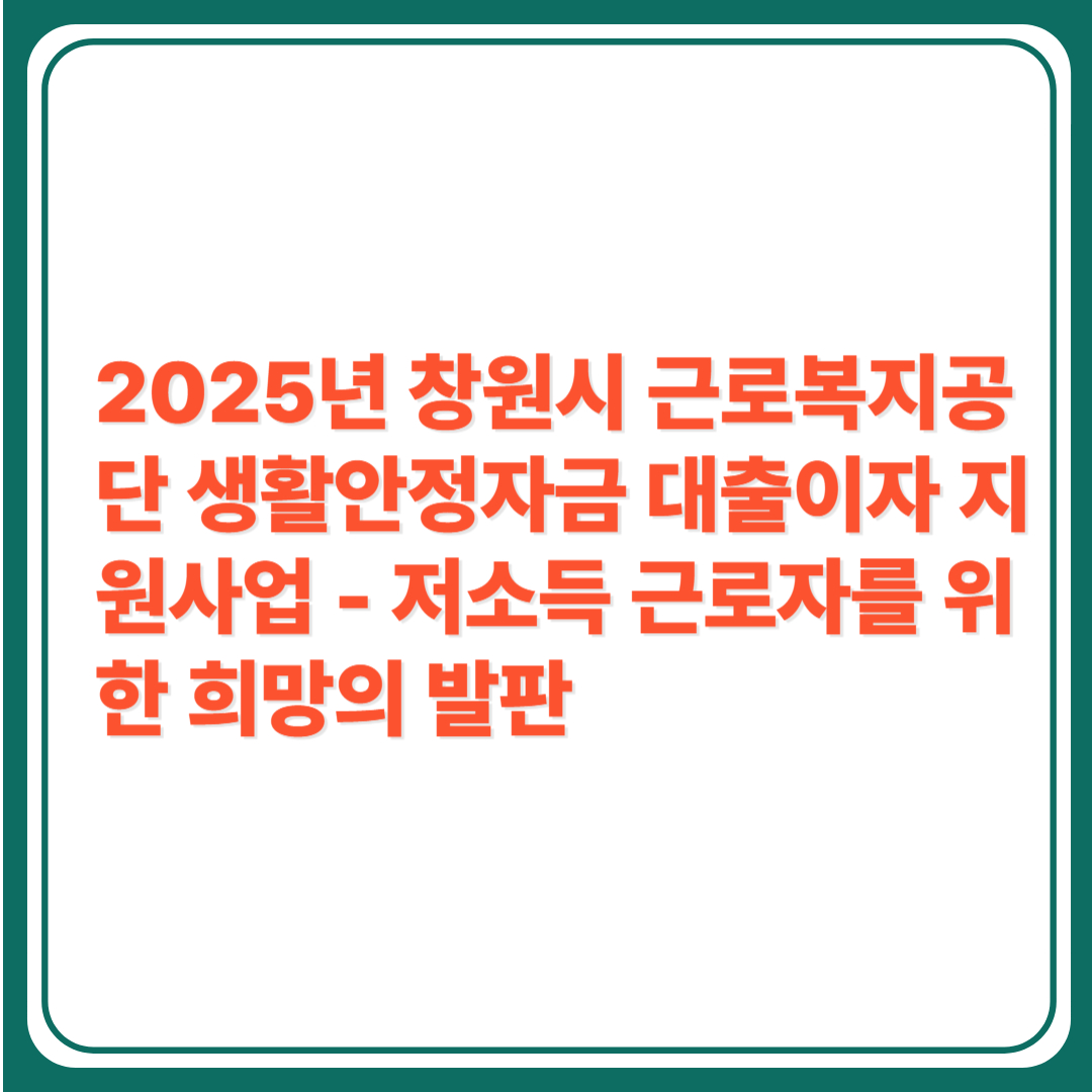 💡 2025년 창원시 근로복지공단 생활안정자금 대출이자 지원사업 - 저소득 근로자를 위한 희망의 발판
