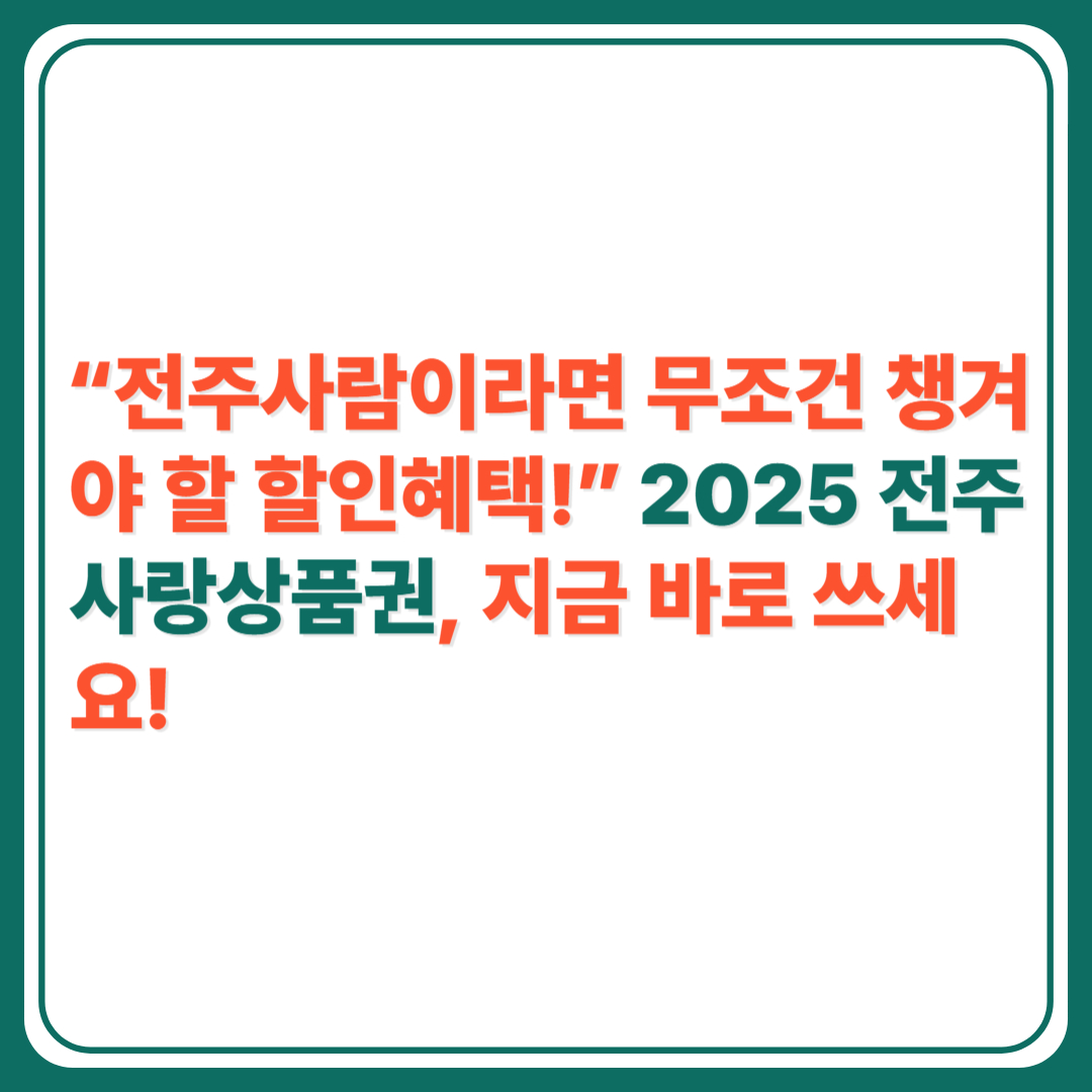 🏙️ “전주사람이라면 무조건 챙겨야 할 할인혜택!” 2025 전주사랑상품권, 지금 바로 쓰세요!