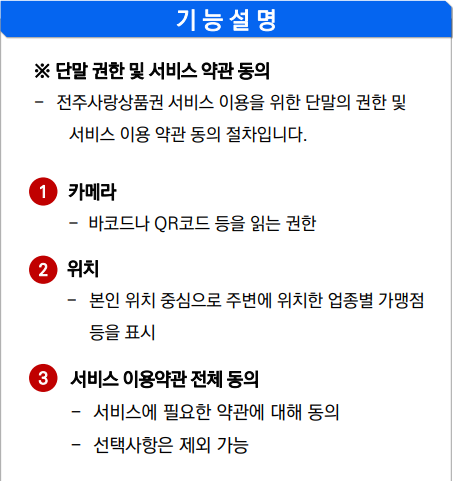 | 지원 문의처 | (앱 관련) 전주사랑상품권 콜센터 ☎ 02-2101-1699 |