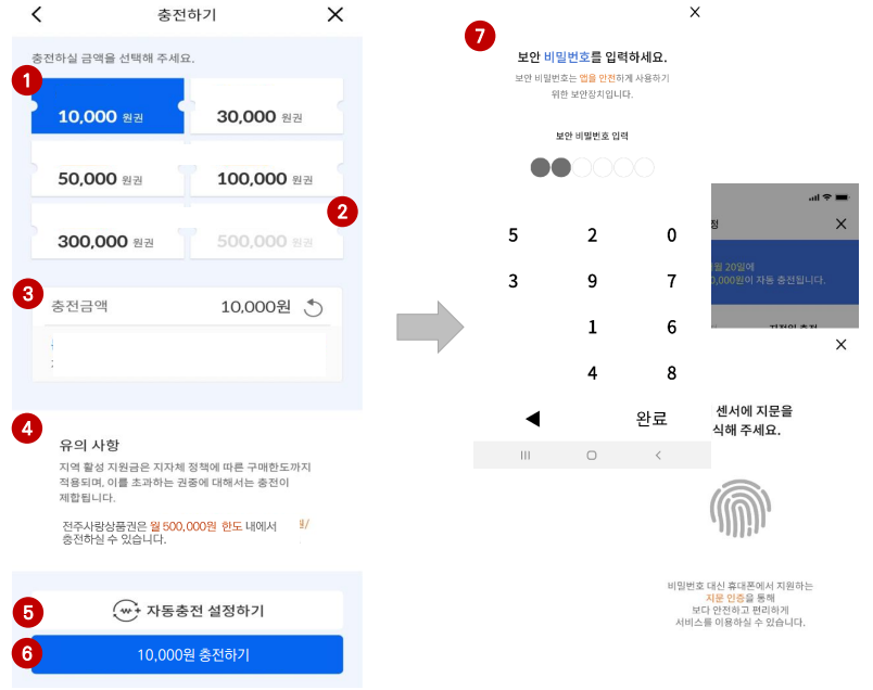 - 현장결제: 상품권 구매 → 종이형 수령 → 가맹점 사용
