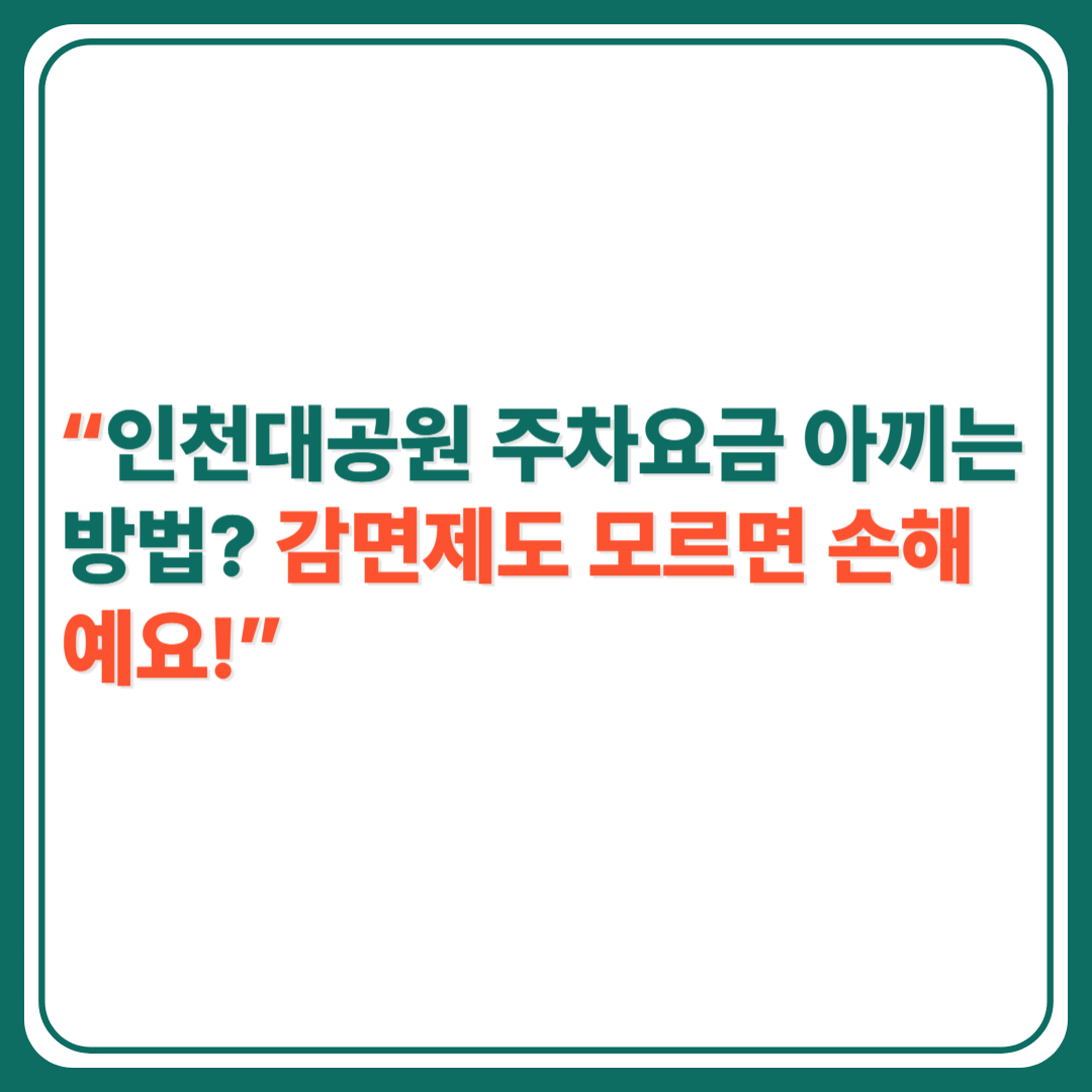 👉 맞습니다! 인천대공원 포함 시 공영주차장에서 100% 면제입니다.