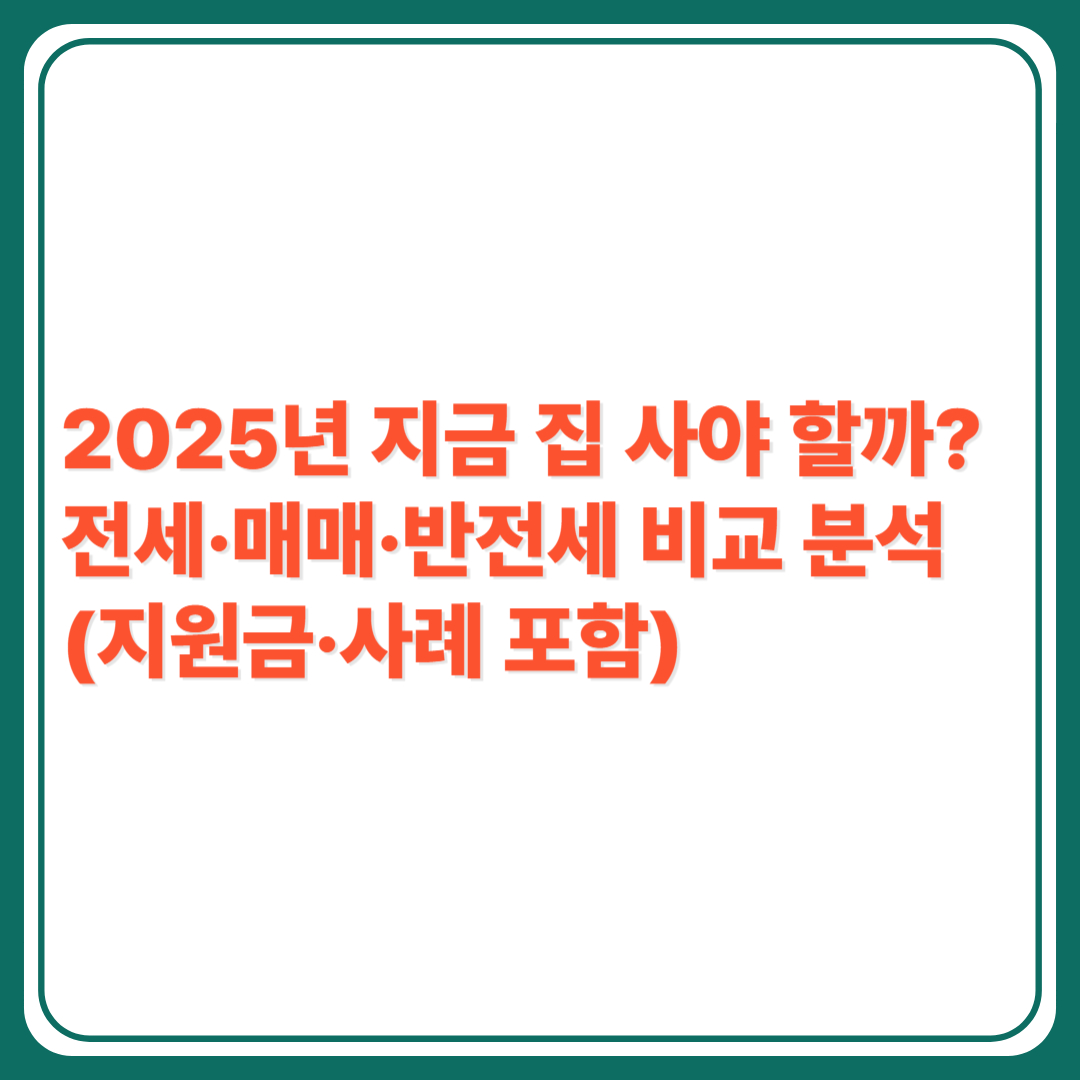 2025년 지금 집 사야 하나? 전세·매매·반전세 비교 분석 (지원금·사례 포함)-모르면 손해!