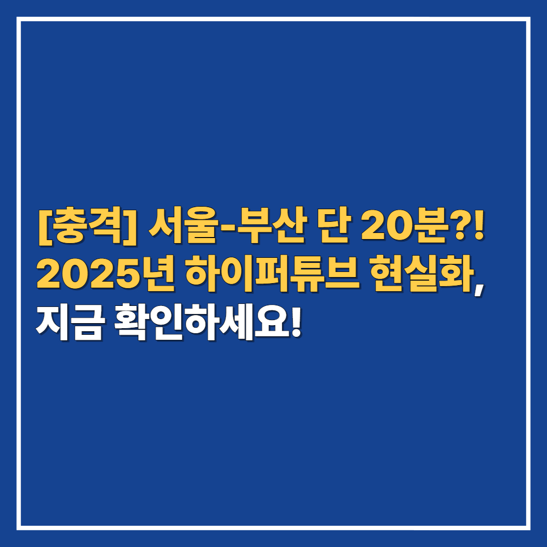[충격] 서울-부산 단 20분?! 2025년 하이퍼튜브 현실화, 지금 확인하세요!